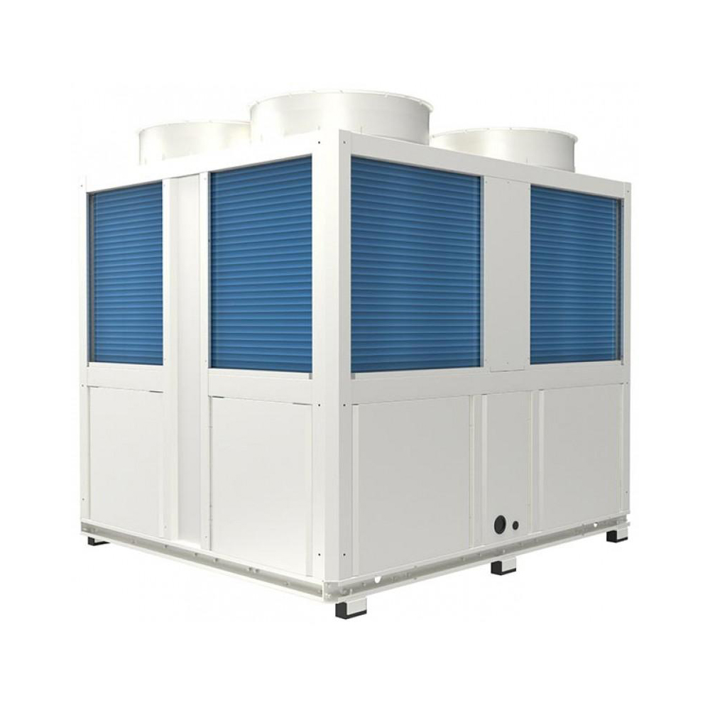 чиллер с воздушным охлаждением, обслуживаемая площадь 1300 кв. м, мощность охлаждения 130000 Вт / обогрева 140000 Вт, хладагент R 410A, напряжение 380 В, расход воды 22.36 куб.м/час